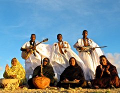 If you think you’ve heard all the great electric guitar styles in the world, think again. This Saharan sand-blizzard of fine-crushed glass will grind your face to a bloody pulp. Group Doueh play raw and unfiltered Saharawi music from the former colonial Spanish outpost of the Western Sahara. Doueh (pronounced “Doo-way”) is their leader and a master of the electric guitar. He’s been performing since he was a child playing in many groups before finally creating his own in the 1980’s. Doueh says he’s Influenced by western pop and rock music especially Jimi Hendrix and James Brown. His sound is distorted, loud and unhinged with an impressive display of virtuosity and style only known in this part of the world. His wife Halima and friend Bashiri are the two vocalists in the group. Saharawi songs are from the sung poetry of the Hassania language. The music is based on the same modal structure as Mauritanian music, however, Doueh’s style is a looser appropriation infused with a western guitar scope, one that relies, in his words, as much on Hendrix as it does traditional Sahrawi music. It also adds a playful pop element that rarely filters through in this region.