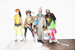 The Spheres use homemade instruments like the biscuit tin guitar, electric bass carillon and sexomouse marimba to create their cosmic dancing sound.