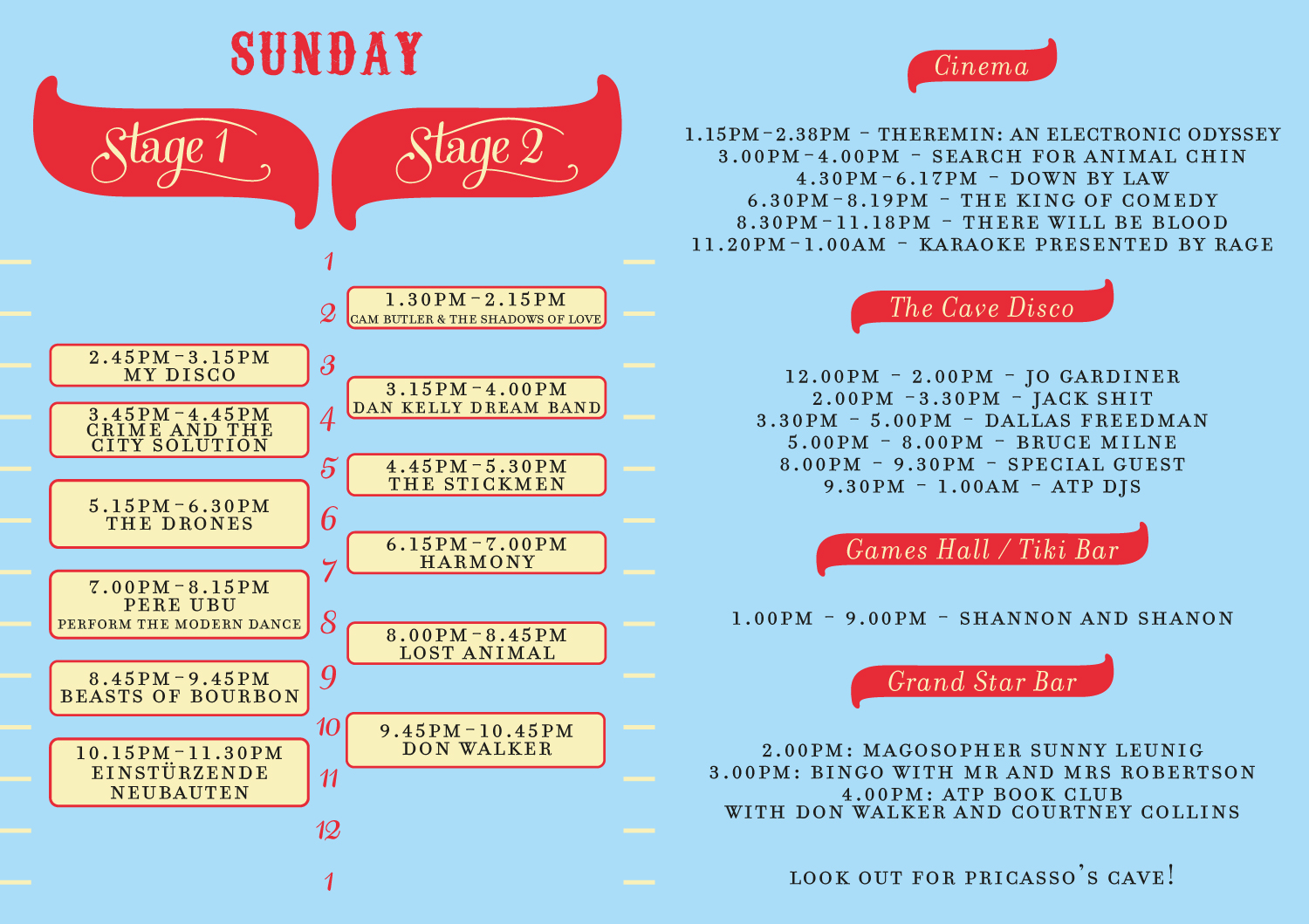 See below for downloadable timecards for this weekend's I'll Be Your Mirror Melbourne to store on your phone/ipad etc. Click on each one for a larger version:
